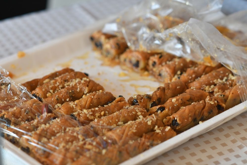Chortopita, Loutraki’s traditional wild herb pie, is a celebration of nature and seasonality. Made with handpicked greens from the slopes of the Gerania Mountains, this savory dish combines fresh herbs, onions, and dill, all wrapped in handmade olive oil phyllo. Often prepared without cheese for a naturally vegan version, chortopita reflects the region’s rural heritage and its enduring love for foraged, wholesome ingredients.