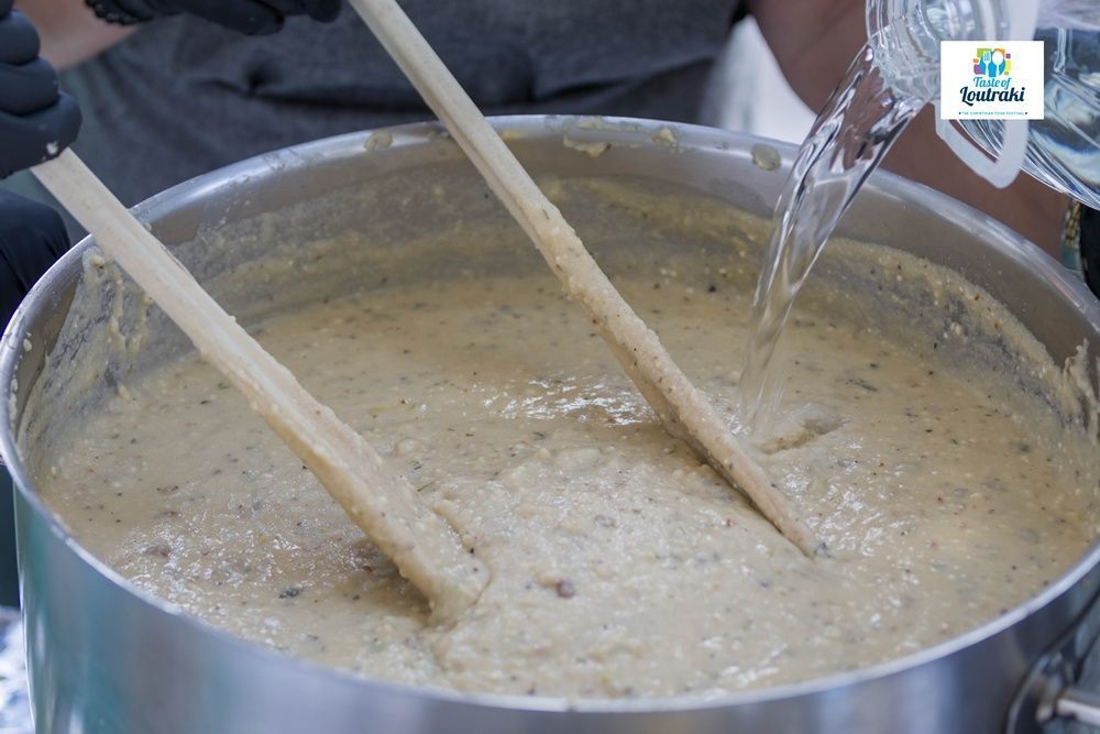 Trachanas is a time-honored grain soup that warms both body and soul during Loutraki’s cooler months. Made from fermented flour and sourdough, it’s traditionally prepared as a thick, nourishing porridge—simple yet full of flavor. While often enjoyed with dairy, a dairy-free version using just water or vegetable broth offers a naturally vegan alternative, staying true to the dish’s humble, rural origins. This comforting staple embodies the resourcefulness and authenticity of local home cooking.