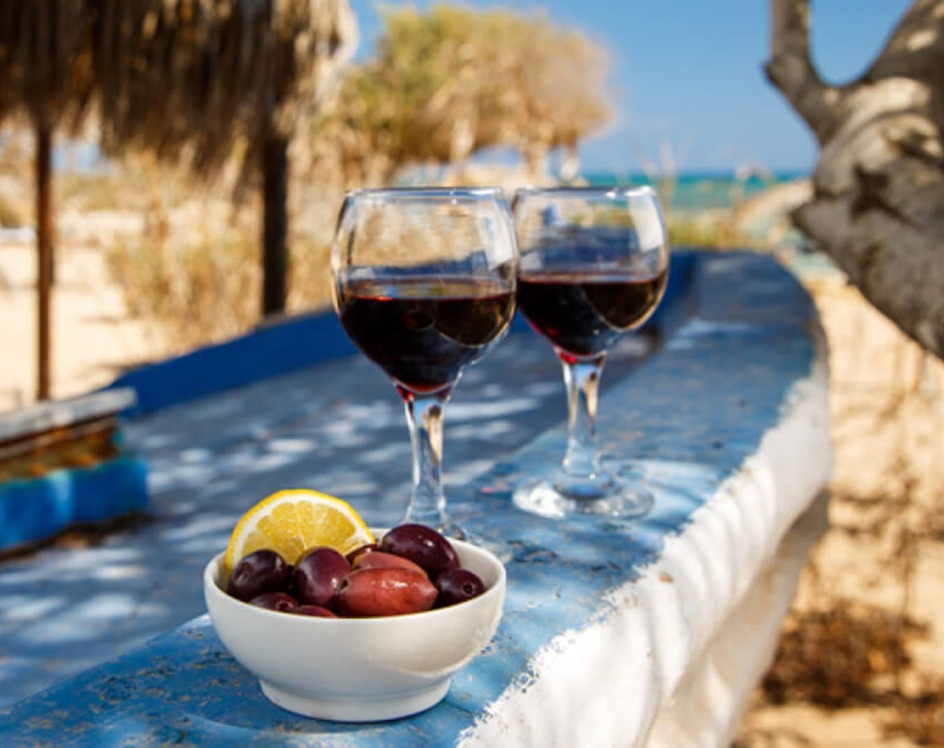 Cypriot brunch includes fresh eggs, halloumi, anari, village sausages and wine-cured bacon from local producers, olive paste, homemade tomato sauce, garlic butter, and a mixture of herbs, oregano, and olive oil, homemade jam, sourdough bread, and coffee or tea.